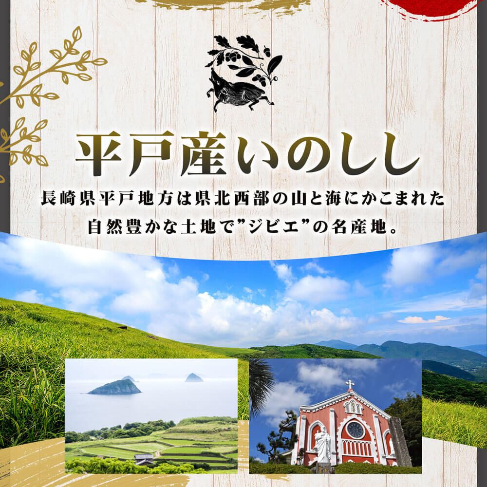 平戸いのししの豊かな旨味と独特な風味が楽しめる、肉好きにぴったりのギフトセット。鹿児島県や長崎県の自然に囲まれて育ったイノシシの肉を使用し、特別感あふれる逸品に仕上げました。バラエティ豊かな部位を楽しむことができ、特別な日や贈り物に最適なアイテムです!