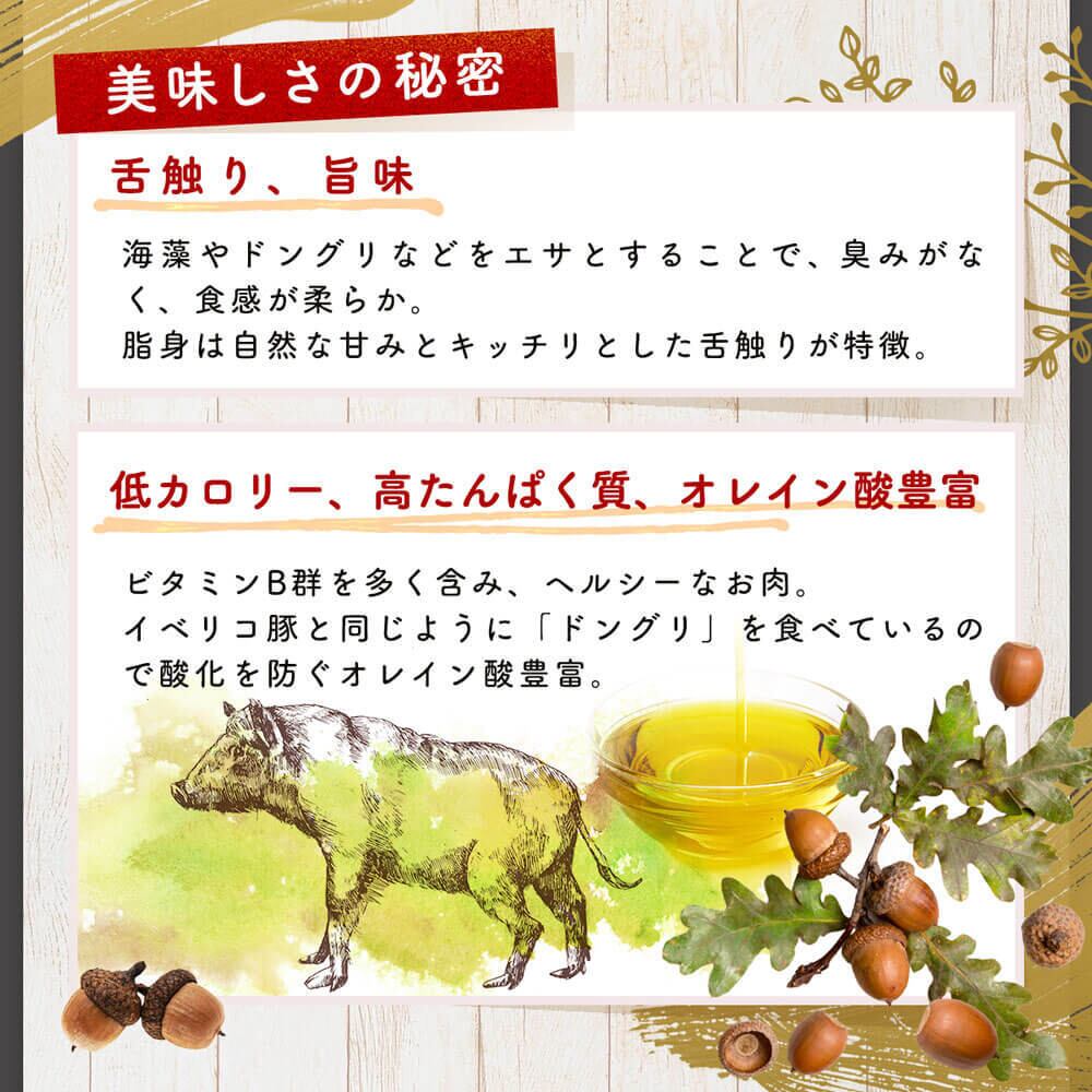 このギフトセットは焼肉、煮込み料理、またはバーベキューにも最適。イノシシ肉の特長である濃厚な味わいを存分に引き出し、家族や友人との楽しい時間を更に彩ります。特別なシーンに、ぜひご活用ください!